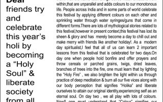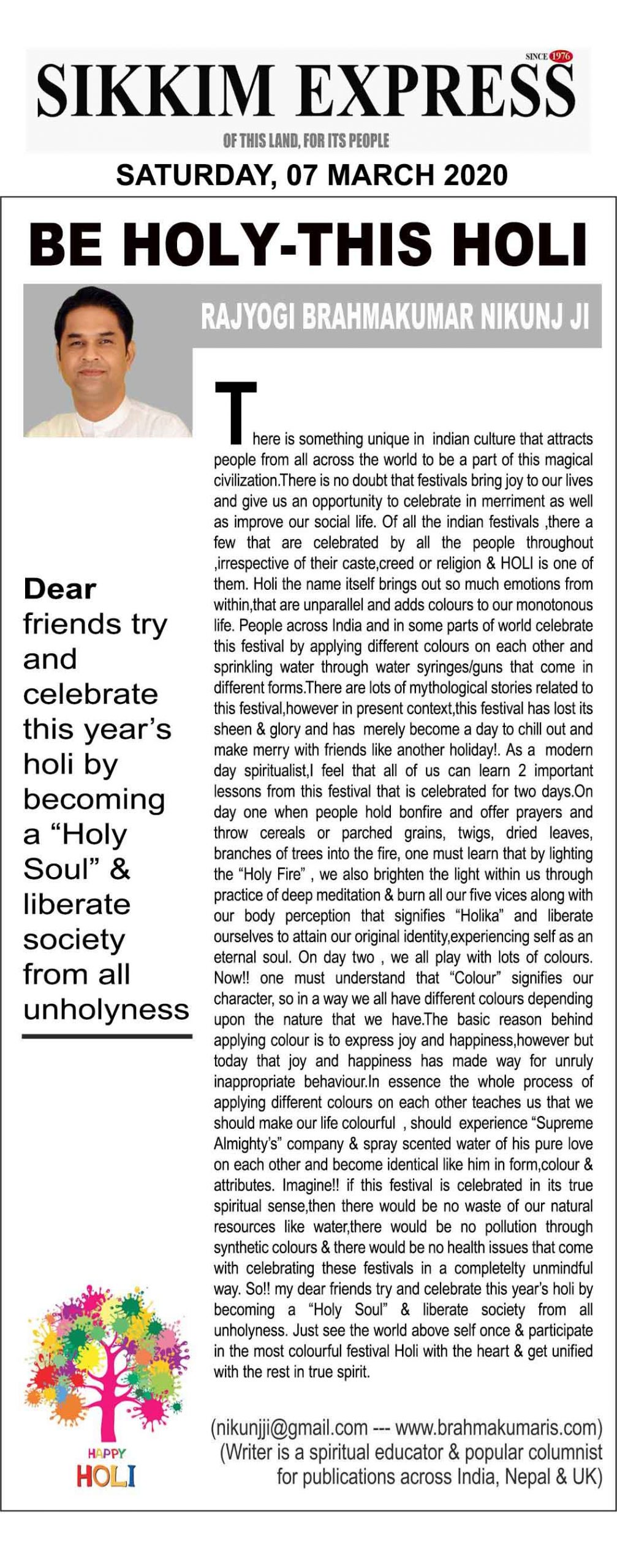 Gallery सभी मतभेदों को भुलाकर मनाये ‘होली’ Rajyogi Nikunj2021-02-09T10:55:25+05:30February 9th, 2021|Read More