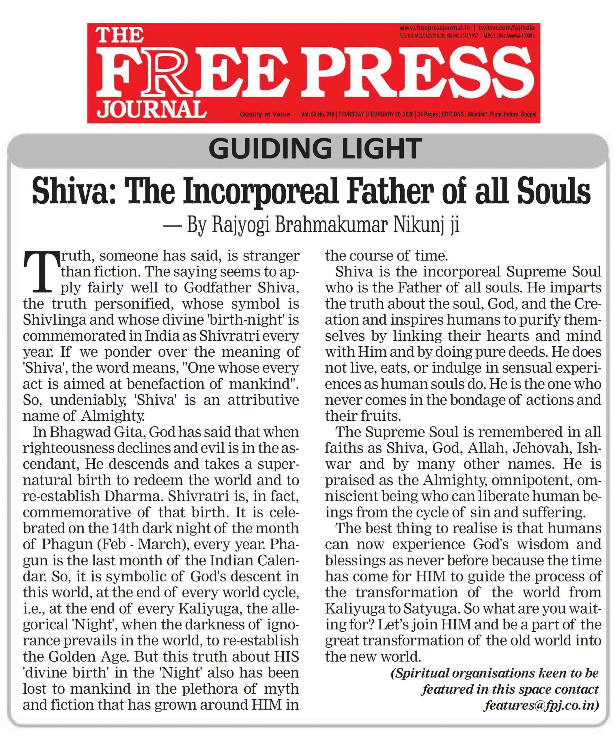 Gallery Shiva : The Incorporeal Father of all Souls Rajyogi Nikunj2021-02-08T11:55:39+05:30February 8th, 2021|Read More