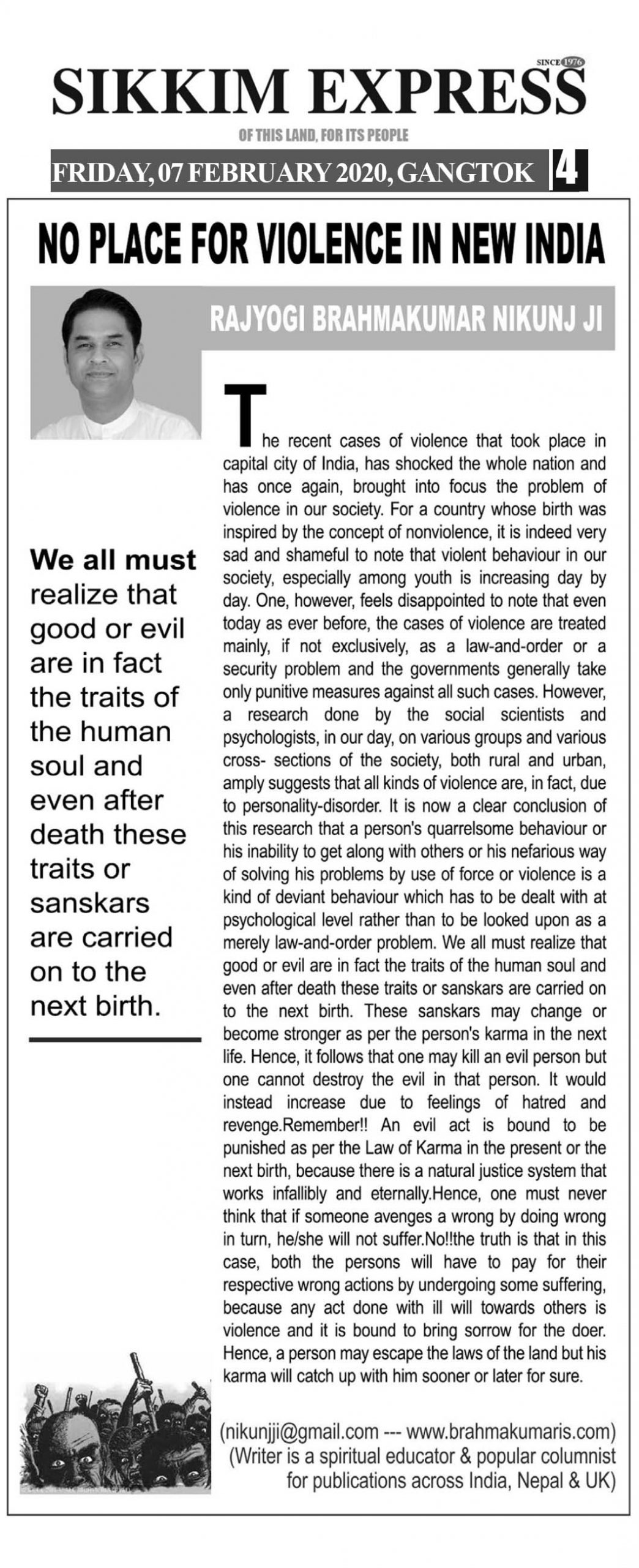 Gallery No Place For Violence In New India Rajyogi Nikunj2021-02-08T10:58:09+05:30February 8th, 2021|Read More