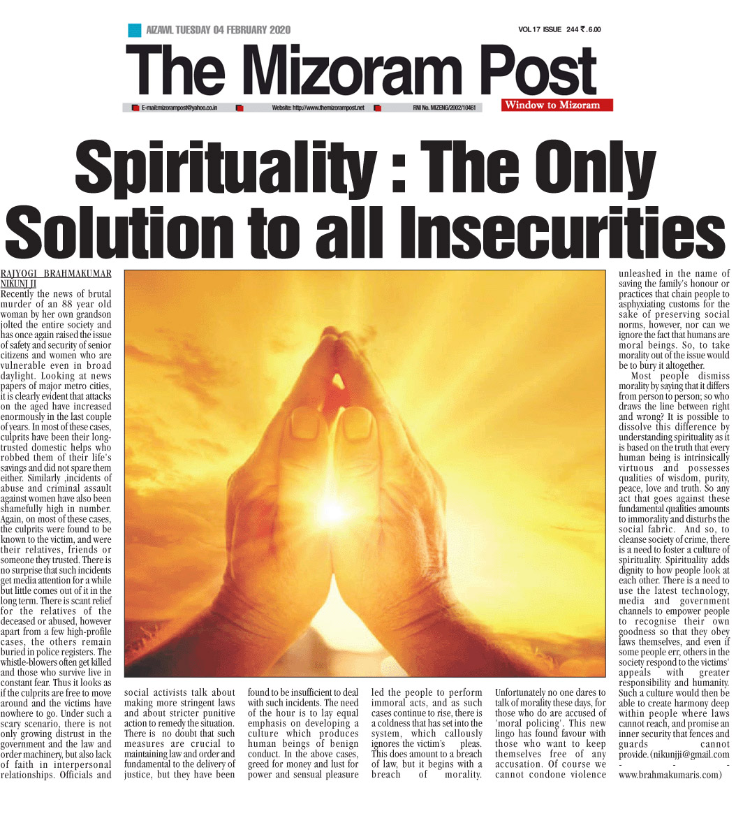 Gallery Spirituality : The Only Solution to all Insecurities Rajyogi Nikunj2021-02-08T10:48:50+05:30February 8th, 2021|Read More