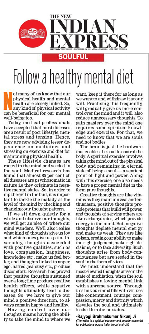 Gallery Follow a healthy mental diet Rajyogi Nikunj2021-02-20T10:11:59+05:30February 2nd, 2021|Read More