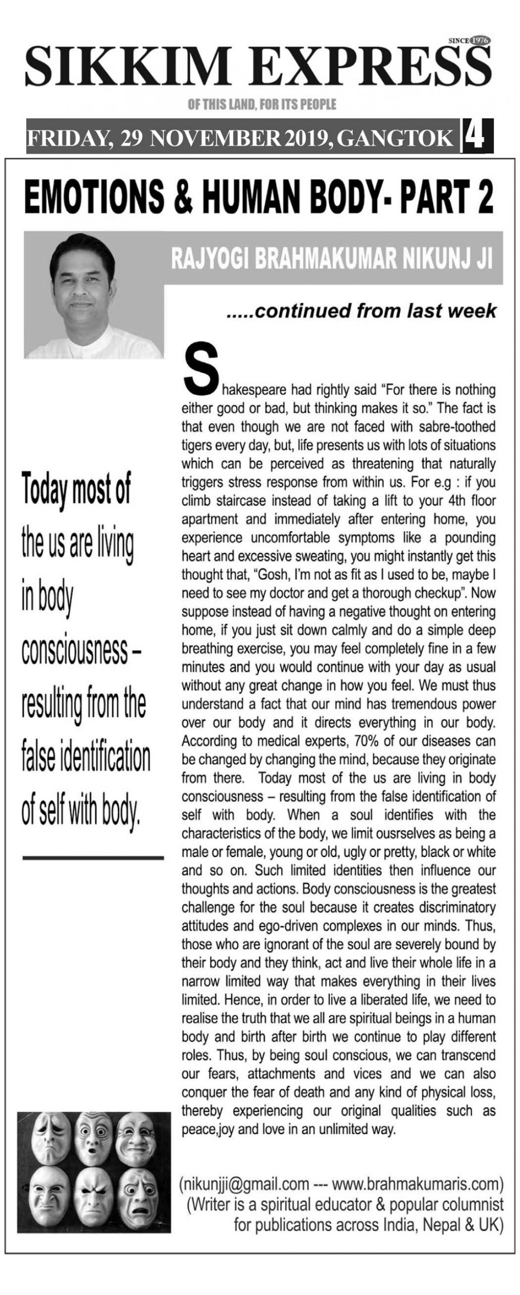 Gallery Emotions & Human Body – Part 2 Rajyogi Nikunj2021-02-19T11:45:28+05:30February 2nd, 2021|Read More