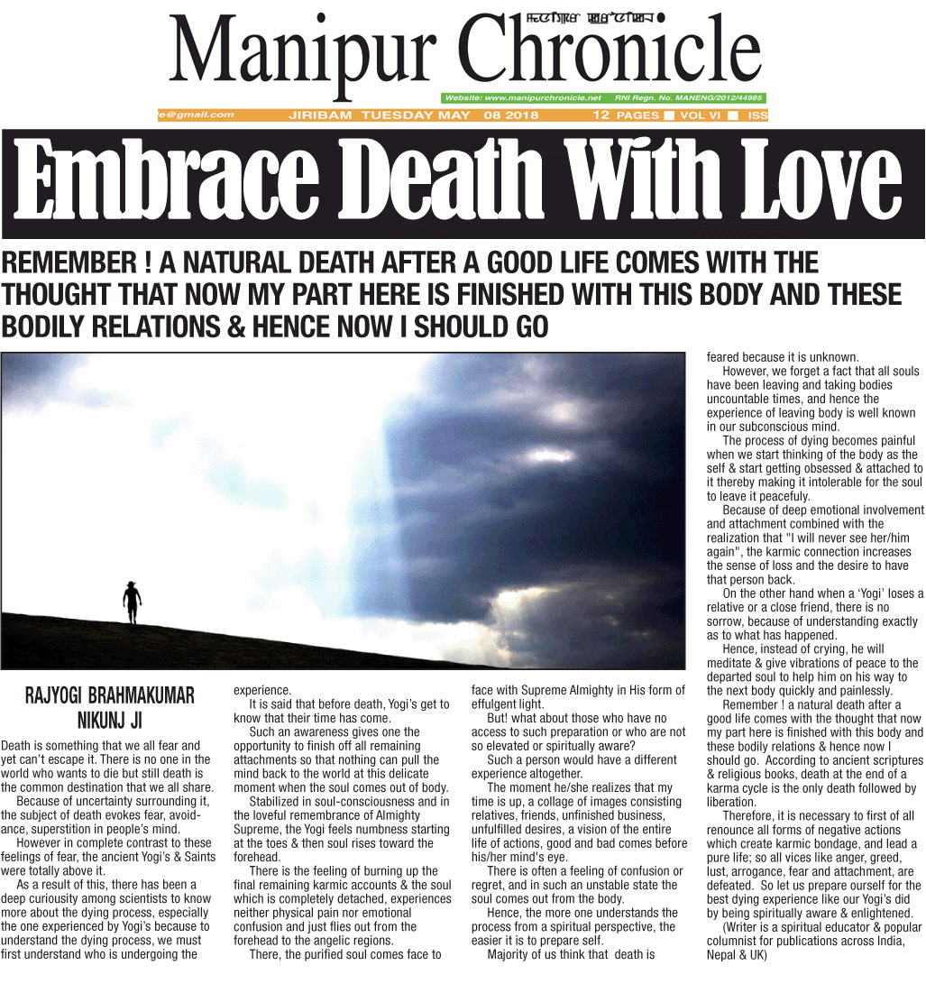 Rajyogi Nikunj2018-05-11T14:36:10+05:30May 8th, 2018|Tags: After Death, Embrace Death with Love, What is death|