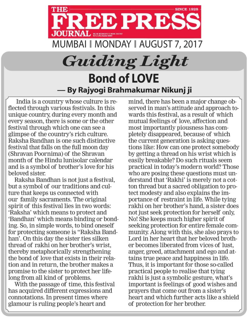 Gallery यथार्थ समझ के साथ मनाएं ‘रक्षा बंधन’Rajyogi Nikunj2017-09-25T16:28:24+05:30August 6th, 2017|Read More